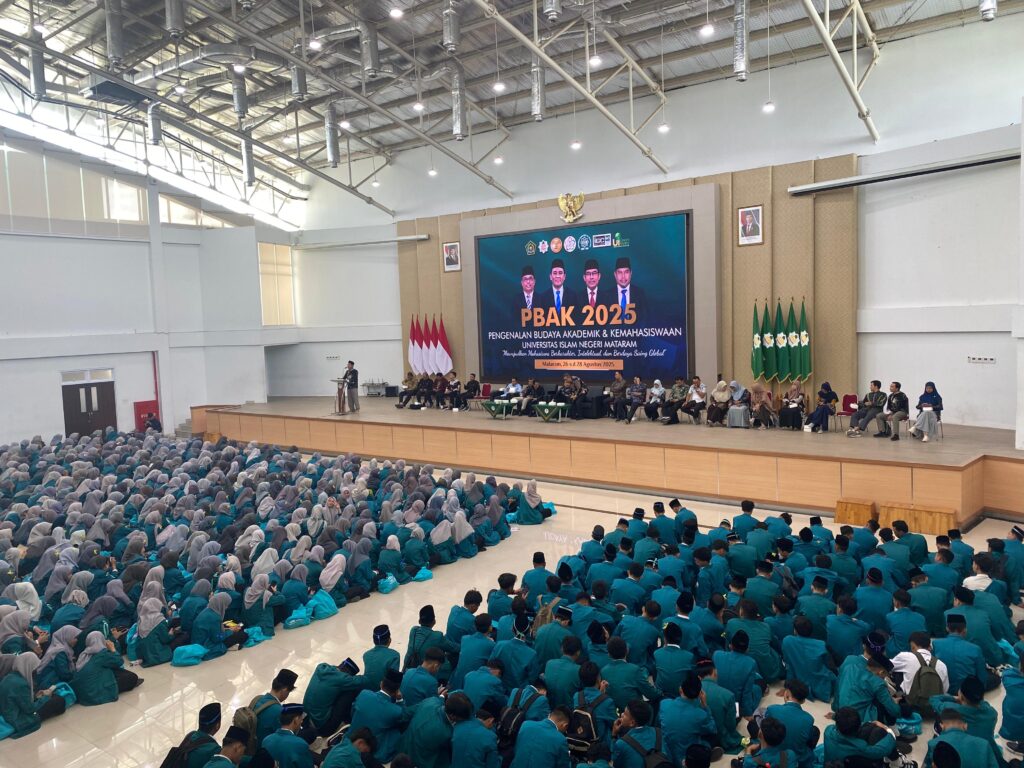 Ro’yuna Redaksi – Fakultas Tarbiyah dan Keguruan (FTK) Universitas Islam Negeri (UIN) Mataram menyambut sebanyak 1. 581 mahasiswa baru dalam kegiatan Pengenalan Budaya Akademik dan Kemahasiswaan (PBAK) dan laksanakan pengenalan fakultas di Auditorium Kampus II UIN Mataram, Kamis, (28/08/2025).