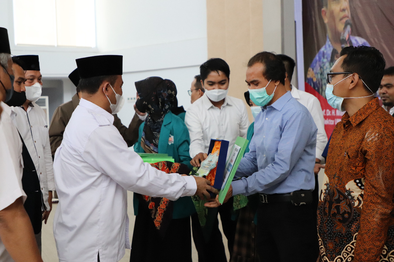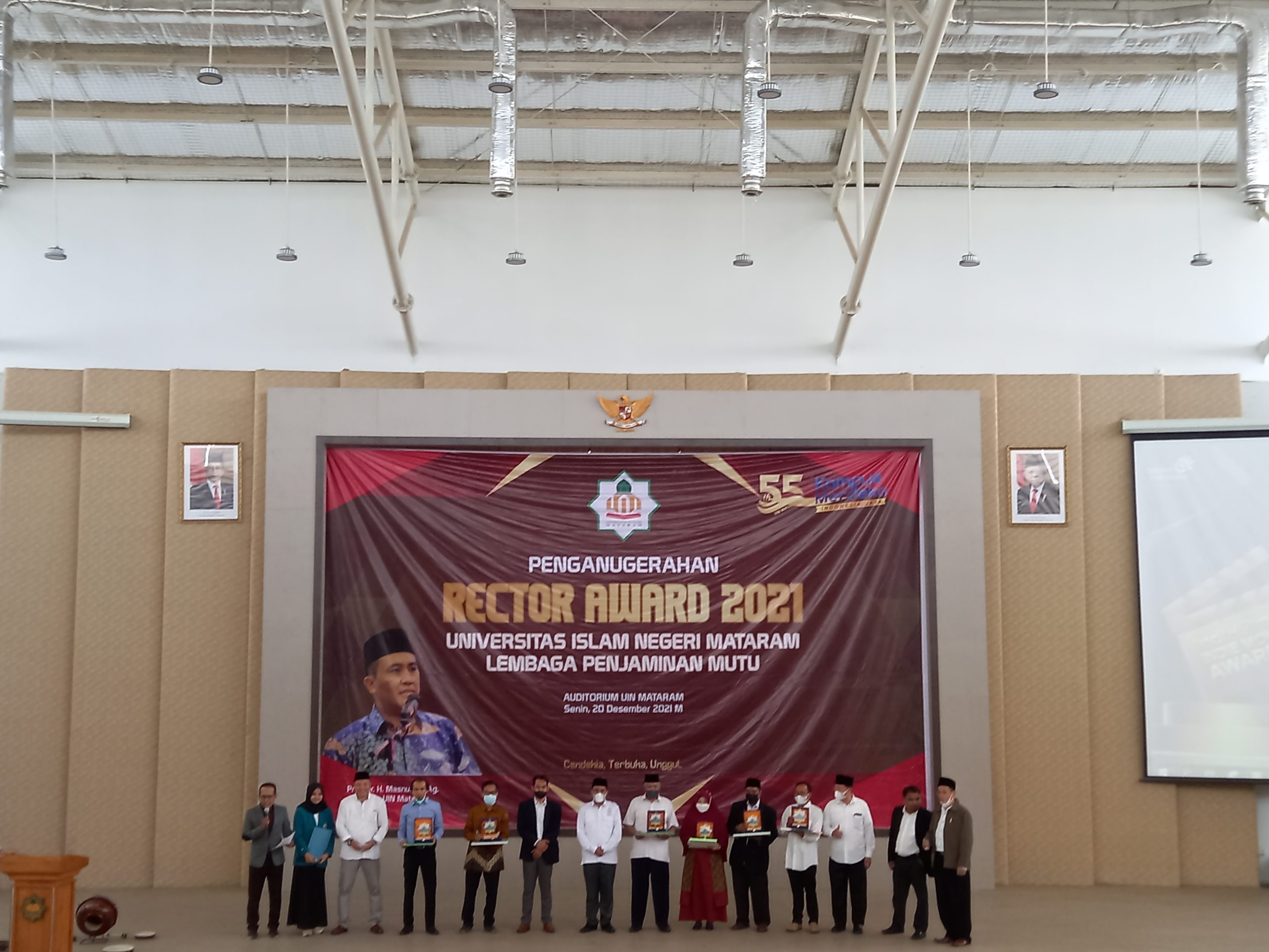 Rektor Universitas Islam Negeri (UIN) Mataram Prof. Dr. H. Masnun, M.Ag serahkan penghargaan kepada dosen terproduktif dalam acara Rektor Award 2021 pada, Senin (20/12), kegiatan ini dilaksanakan di Auditorium Kampus 2 UIN Mataram.