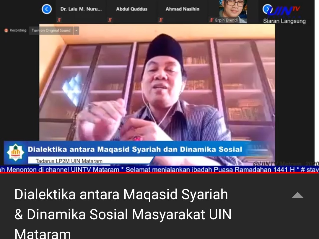 Sebelumnya, pada Tadarus LP2M Rabu (13/5), Prof. Dr. H. Mutawali, M.Ag., Rektor sekaligus Guru Besar bidang Filsafat Hukum Islam UIN Mataram sebagai pembicara pertama menjelaskan pentingnya pemahaman mengenai tujuan sebuah syariat atau maqashid syariah. Ia menyebutkan bahwa tujuan syariah ialah kemaslahatan atau keselamatan ummat di dunia dan akhirat. Pemahaman yang dimaksud haruslah sampai pada ranah praktik. Sebab dengan mengetahui dan memahami alasan sebuah ketetapan, maka masyarakat tidak akan bingung, apalagi ribut. Pemahaman ini mengantarkan muslim memahami pentingnya menjaga diri dalam kondisi saat ini.
