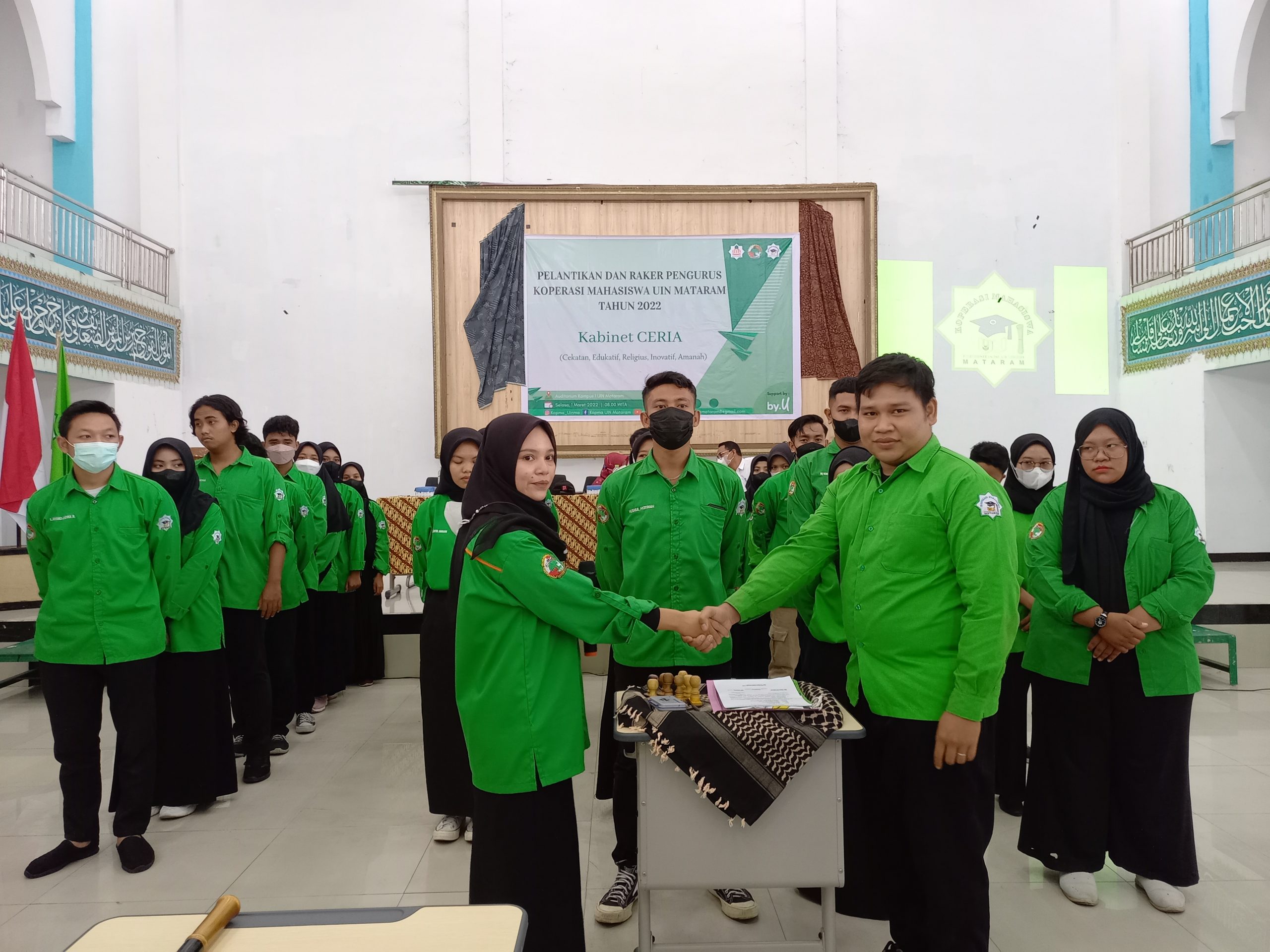 Ro’yuna Redaksi-Berlangsung di Auditorium Kampus I UIN Mataram , Unit Kegiatan Mahasiswa (UKM) Koperasi Mahasiswa UIN Mataram mengadakan Pelantikan dan Rapat Kerja (Raker) Pengurus Kopma Tahun 2022. Selasa (01/03/22).