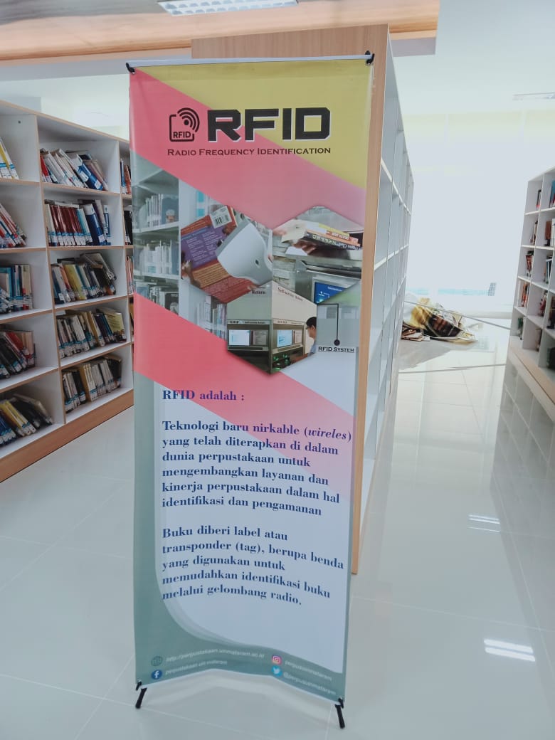 RFID yaitu teknologi yang memungkinkan meminjam dan mengembalikan buku secara otomatis melalui sistem tanpa melalui petugas perpustakaan. Kecuali buku berdenda yang harus memakai atau melalui petugas perpustakaan yang melibatkan pemasangan chips didalam buku. Sehingga kondisi buku dan data buku bisa terbaca oleh sistem langsung tanpa melalui petugas.