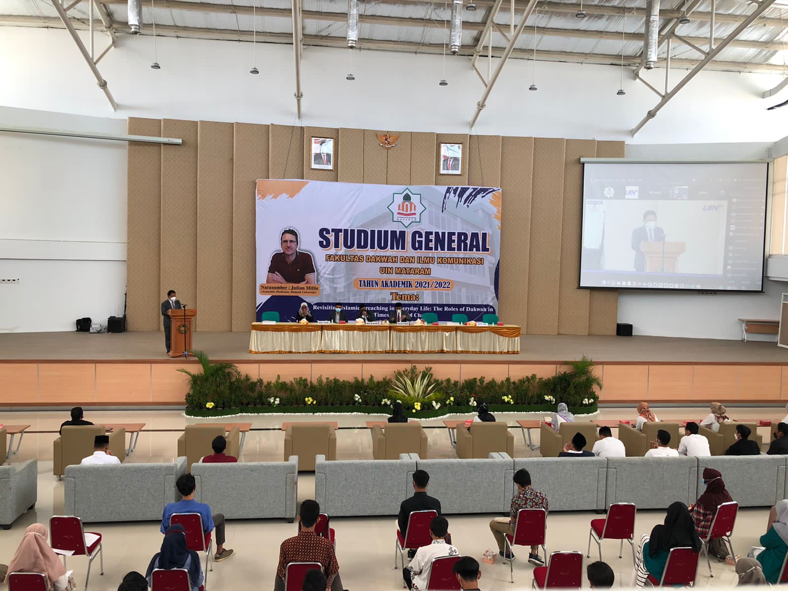Studium General yang diadakan oleh Fakultas Dakwah dan Ilmu Komunikasi (FDIK) UIN Mataram pada Senin 11 Oktober 2021 dihadiri langsung oleh Rektor UIN Mataram dan Dekan FDIK. Dengan mengusung tema,  “Revitising Islamic Preaching in Everyday Life : The Roles of Dakwah in Times of Rapid Character”, acara tersebut berlangsung di Auditorium Kampus II UIN Mataram.