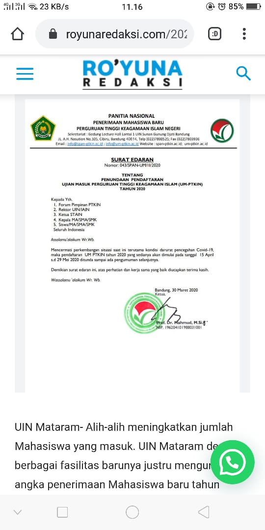 Pantau terus perkembangan pendaftaran masuk Perguruan Tinggi Keagamaan Islam Negeri melalui;